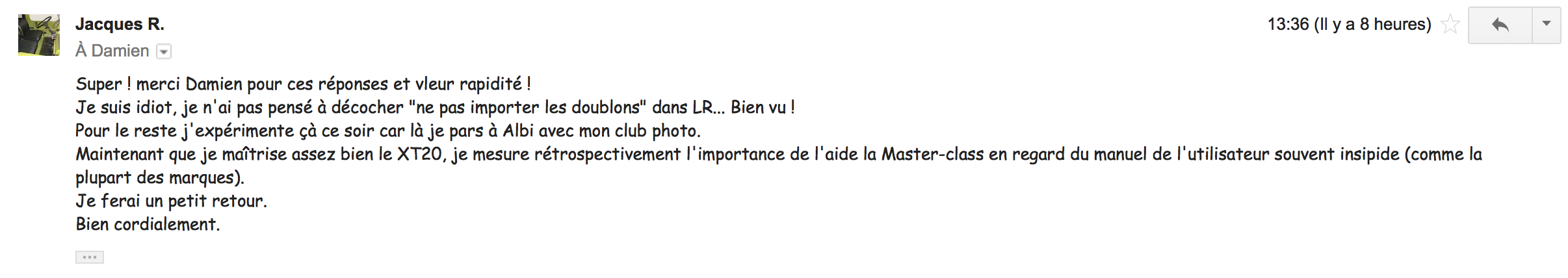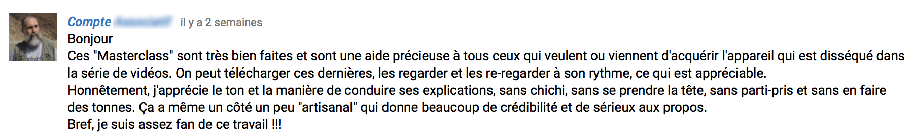 J'ai pris quelques retours que j'ai eu sur les Masterclass... le bouche à oreille est incroyable !